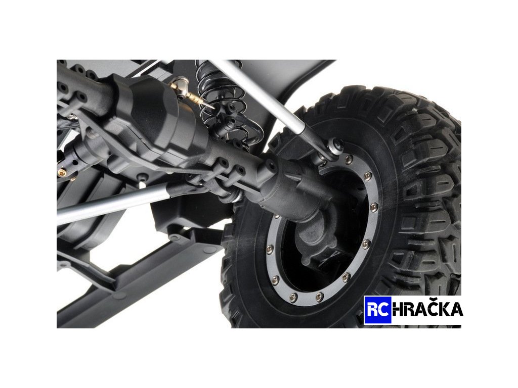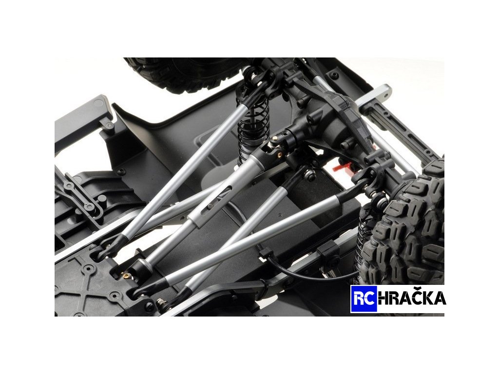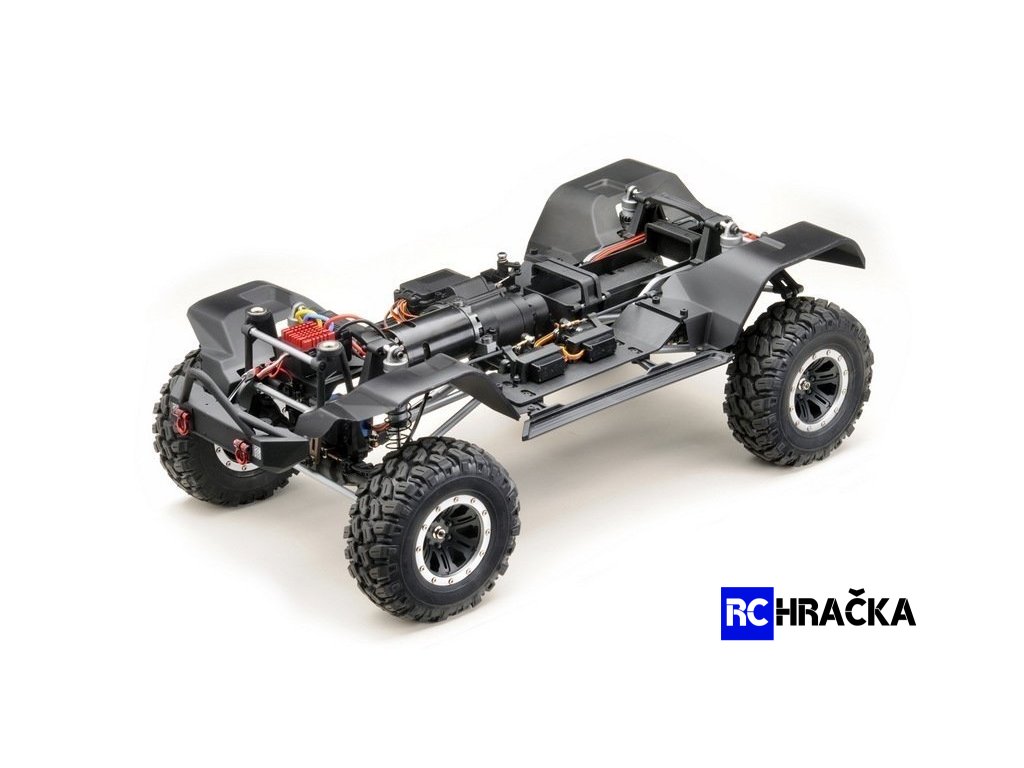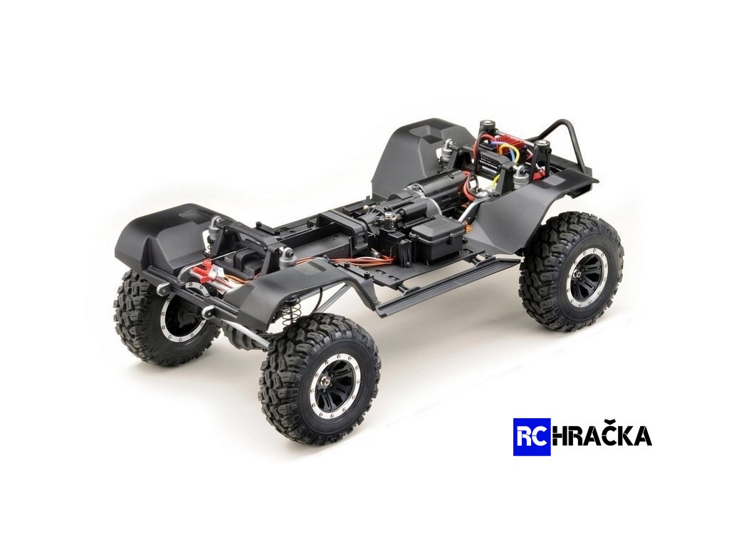 Nadstandardně vybavený expediční speciál 1:8 s excelentními jízdními vlastnostmi. Model je konstrukčně shodný s modelem SHERPA, jedná se prakticky o cca 10cm delší/větší Sherpu. Model má pohon všech kol, je vybaven portálovými nápravami pro maximální průjezdnost terénem. Dvoustupňová převodovka, uzávěrky diferenciálů, nainstalované LED osvětlení - vše ovládané ze šestikanálového vysílače. Kovový rám s rozvorem 370mm je vybaven plastovými podběhy, které výrazně omezují pronikání nečistot na šasi. Nápravy jsou zavěšené na klasickém 4-linku (kovové linky). Všechny poloosy jsou vybaveny vylepšenými klouby, přední kola mají úhel zatočení 43° na každou stranu. Měkké pneumatiky s velkým gripem jsou nasazené jsou na 2.2 plastových beadlock diskách s kovovými přítlačnými kroužky. Tlumiče jsou olejové, kovové. Převody jsou komplet zakrytované. Pastorek s převodovým kolem mají modul 32dp. Silné servo řízení s kovovými převody ovládá přední kola přes účinný tlumič řízení, toto řešení výrazně prodlužuje životnost serva a snižuje nároky na jeho výkon (tah). Elektromotor je stejnosměrný typ 775 s velkým točivým momentem. Regulátor je od Hobbywingu 80A, s napájením 2-3S LiPo. Karosérie je na podvozku připevněna magnetickými úchyty a je vybavena mnoha maketovými doplňky včetně maketového interiéru.