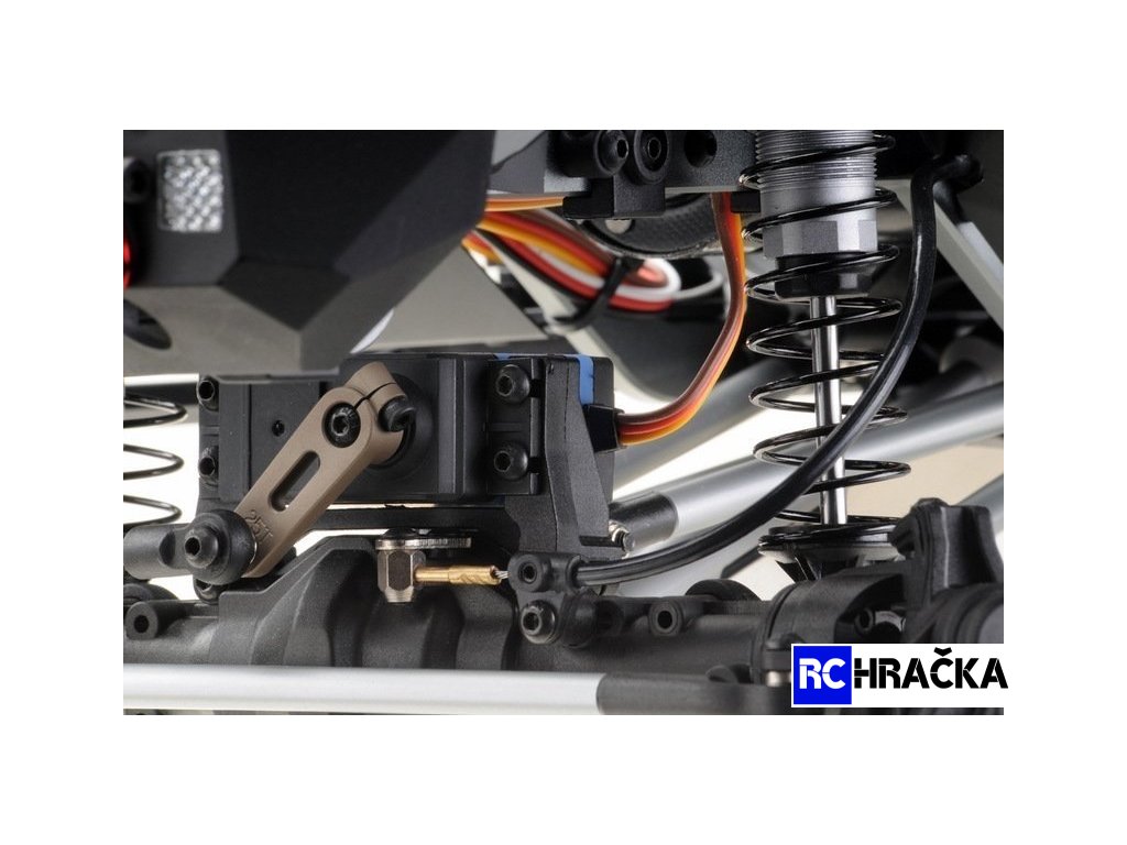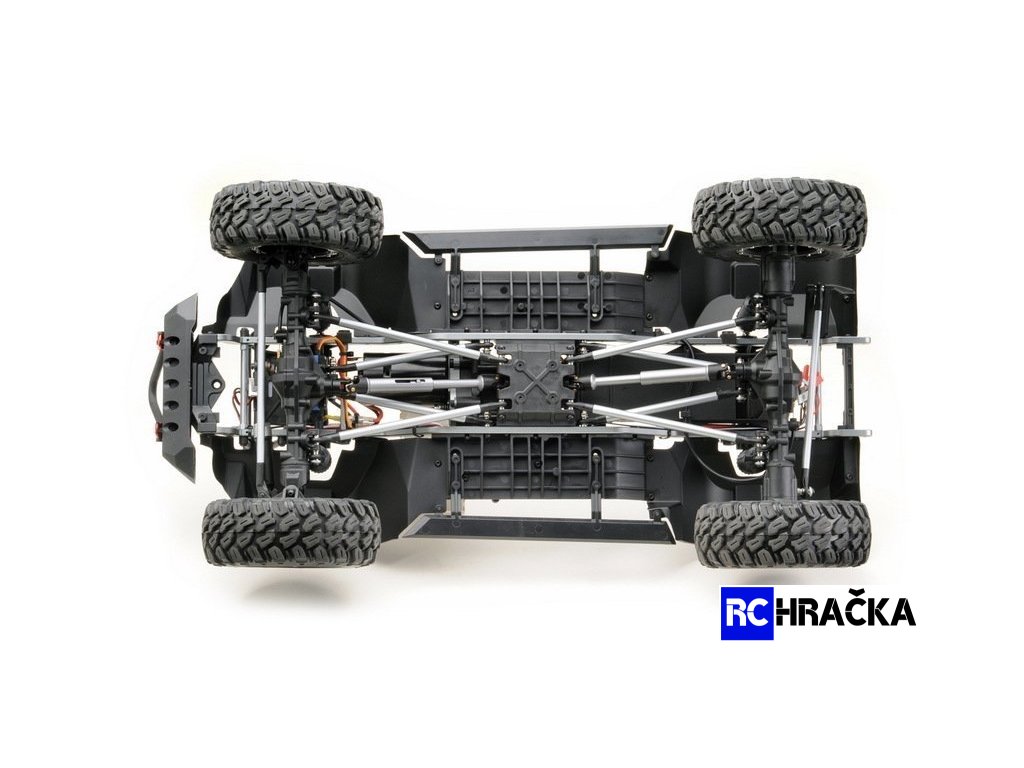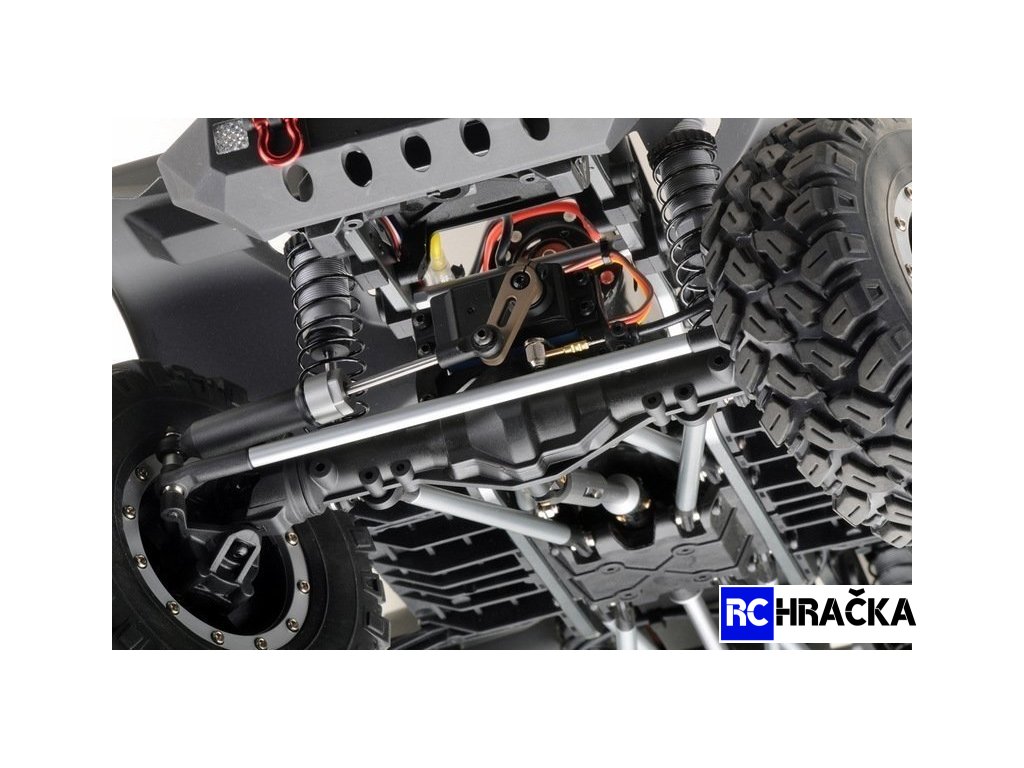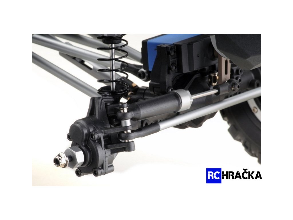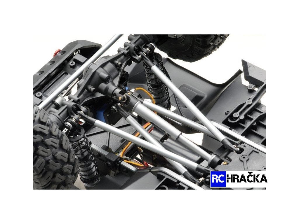 Nadstandardně vybavený expediční speciál 1:8 s excelentními jízdními vlastnostmi. Model je konstrukčně shodný s modelem SHERPA, jedná se prakticky o cca 10cm delší/větší Sherpu. Model má pohon všech kol, je vybaven portálovými nápravami pro maximální průjezdnost terénem. Dvoustupňová převodovka, uzávěrky diferenciálů, nainstalované LED osvětlení - vše ovládané ze šestikanálového vysílače. Kovový rám s rozvorem 370mm je vybaven plastovými podběhy, které výrazně omezují pronikání nečistot na šasi. Nápravy jsou zavěšené na klasickém 4-linku (kovové linky). Všechny poloosy jsou vybaveny vylepšenými klouby, přední kola mají úhel zatočení 43° na každou stranu. Měkké pneumatiky s velkým gripem jsou nasazené jsou na 2.2 plastových beadlock diskách s kovovými přítlačnými kroužky. Tlumiče jsou olejové, kovové. Převody jsou komplet zakrytované. Pastorek s převodovým kolem mají modul 32dp. Silné servo řízení s kovovými převody ovládá přední kola přes účinný tlumič řízení, toto řešení výrazně prodlužuje životnost serva a snižuje nároky na jeho výkon (tah). Elektromotor je stejnosměrný typ 775 s velkým točivým momentem. Regulátor je od Hobbywingu 80A, s napájením 2-3S LiPo. Karosérie je na podvozku připevněna magnetickými úchyty a je vybavena mnoha maketovými doplňky včetně maketového interiéru.
