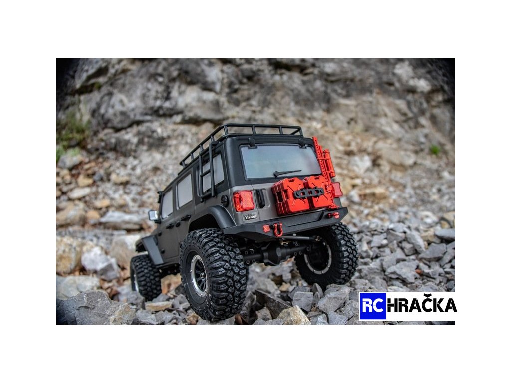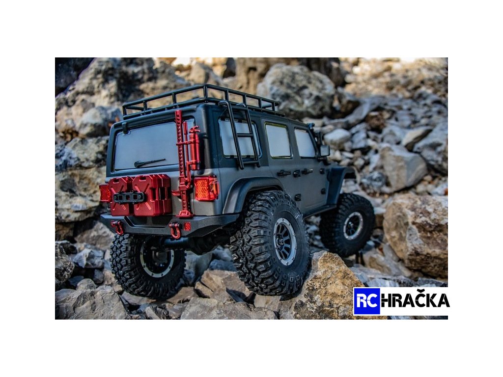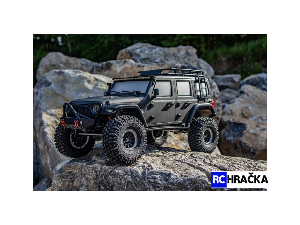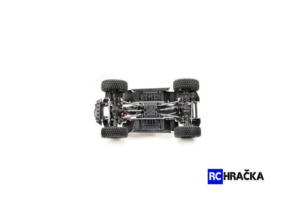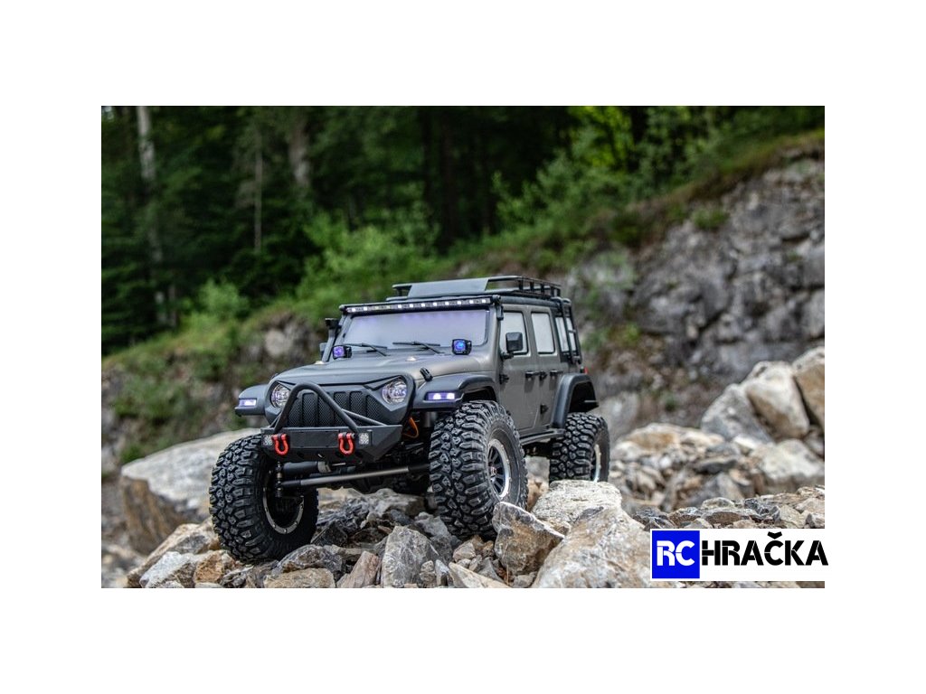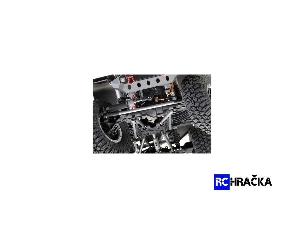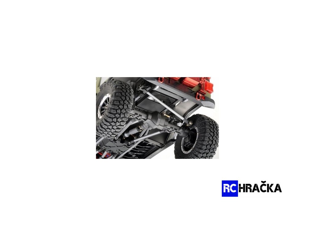 Nadstandardně vybavený expediční speciál 1:10 s excelentními jízdními vlastnostmi. Model má pohon všech kol, je vybaven portálovými nápravami pro maximální průjezdnost terénem. Dvoustupňová převodovka, uzávěrky diferenciálů, nainstalované LED osvětlení - vše ovládané ze šestikanálového vysílače. Kovový rám s rozvorem 313mm je vybaven plastovými podběhy, které výrazně omezují pronikání nečistot na šasi. Nápravy jsou zavěšené na klasickém 4-linku (kovové linky). Všechny poloosy jsou vybaveny CVD klouby, přední kola mají úhel zatočení 45° na každou stranu. Měkké pneumatiky s velkým gripem jsou nasazené jsou na 1,9 plastových beadlock diskách. Tlumiče jsou olejové, kovové, s vnitřními pružinami a pístnicemi zakrytými gumovými prachovkami. Převody jsou komplet zakrytované. Pastorek s převodovým kolem mají modul 32dp. Silné servo řízení s kovovými převody ovládá přední kola přes účinný tlumič řízení, toto řešení výrazně prodlužuje životnost serva a snižuje nároky na jeho výkon (tah). Elektromotor je stejnosměrný typ 550 s velkým točivým momentem. Regulátor je od Hobbywingu, osvědčený typ 1060. Karosérie je na podvozku připevněna magnetickými úchyty a je vybavena mnoha maketovými doplňky.