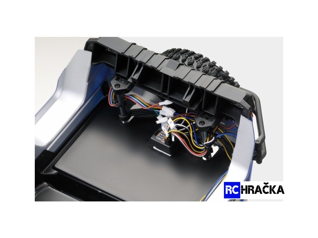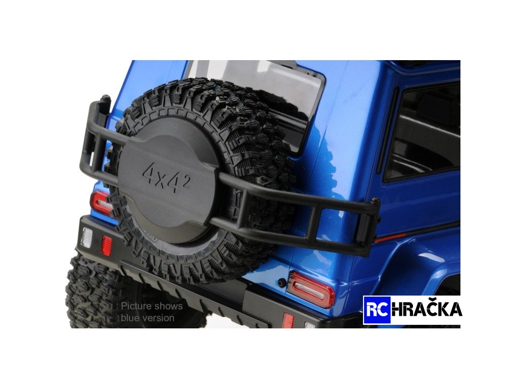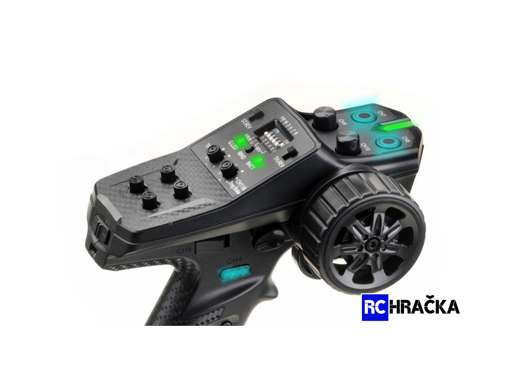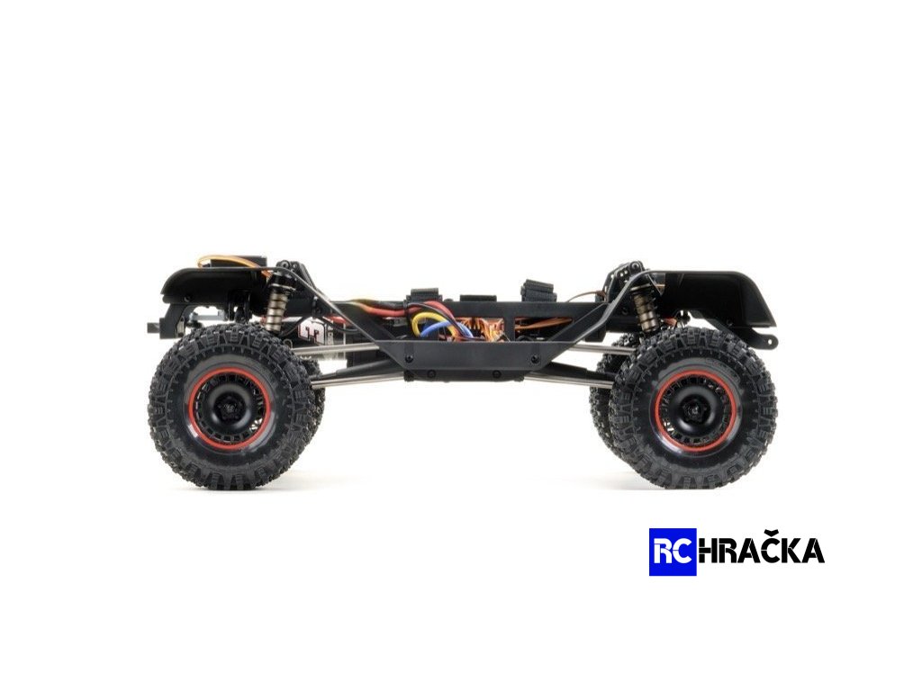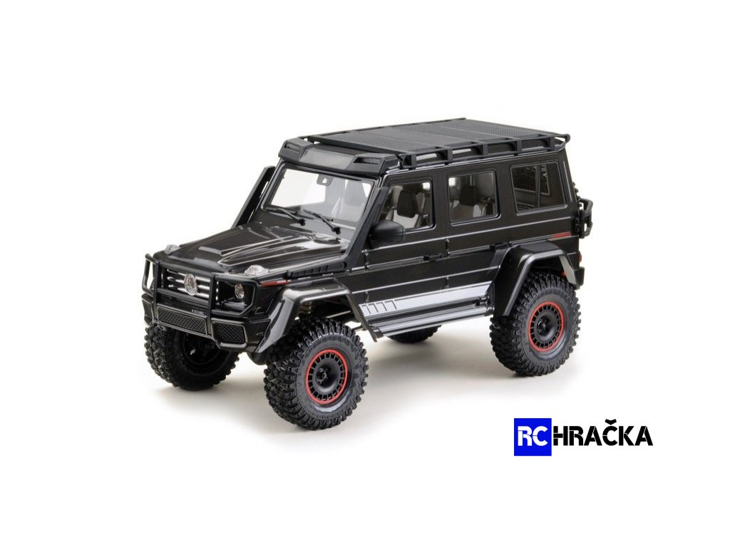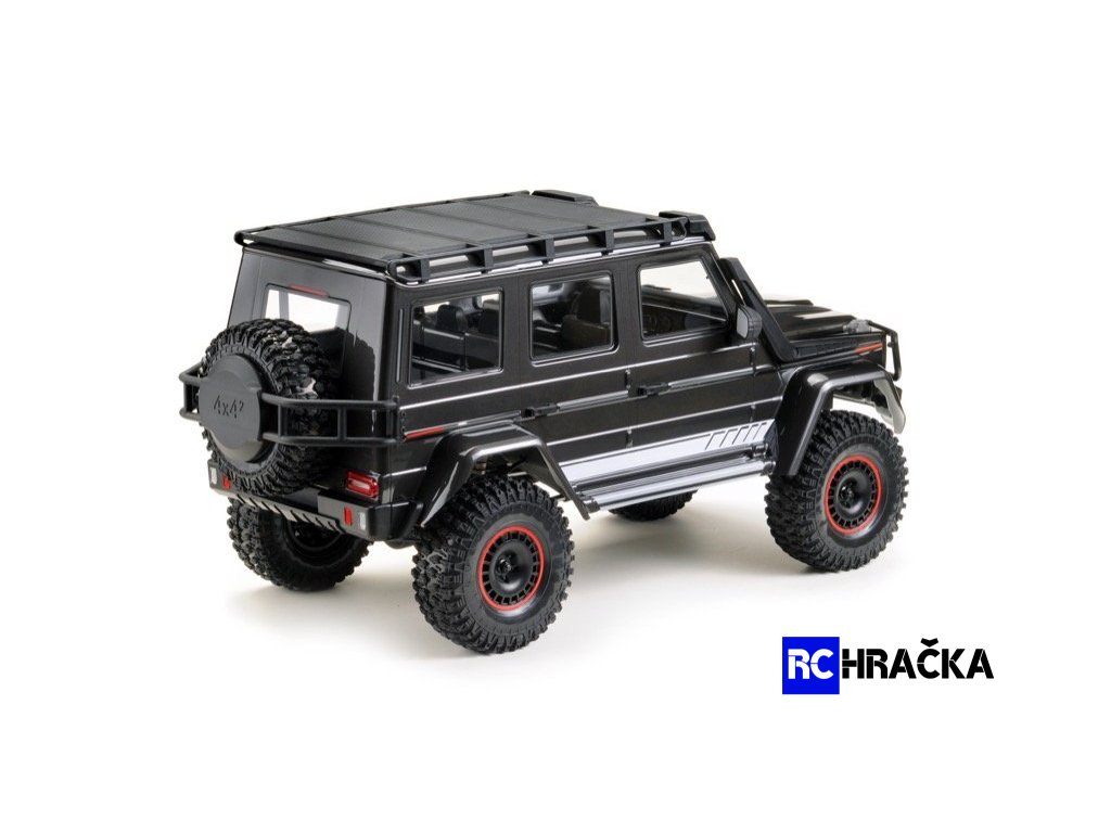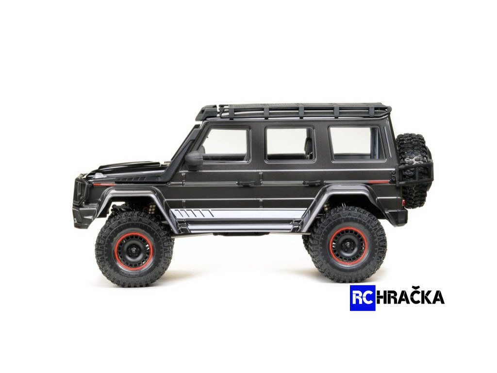 Nová generace expedičního speciálu Absima 1:10 s excelentními jízdními vlastnostmi. Model má pohon všech kol, je vybaven portálovými nápravami pro maximální průjezdnost terénem. Podvozek má díky novému umístění motru, převodovky a baterie velmi nízké těžiště, což výrazným způsobem vylepšuje jízdní vlastnosti. Dvoustupňová převodovka, uzávěrky diferenciálů, nainstalované LED osvětlení - vše je ovládané z jedenáctikanálového vysílače a ještě vám zůstanou volné kanály na ovládání případných dalších funkcí (naviják, majáky a pod.). Pevný plastový rám s rozvorem 325mm je vybaven plastovými podběhy, které výrazně omezují pronikání nečistot na šasi. Nápravy jsou zavěšené na klasickém 4-linku (kovové linky). Poloosy jsou vybaveny CVD klouby, přední kola mají úhel zatočení 45° na každou stranu. Měkké pneumatiky s velkým gripem jsou nalepené na 2.2 plastových diskách. Tlumiče jsou olejové, kovové. Všechny převody jsou kovové (kromě velkého převodového kola u pastorku) a komplet zakrytované. Pastorek s převodovým kolem mají modul 32dp. Silné servo řízení s tahem 25kg s kovovými převody ovládá přední kola přes účinný tlumič řízení, toto řešení výrazně prodlužuje životnost serva a snižuje nároky na jeho výkon (tah). Elektromotor je stejnosměrný typ 550 s velkým točivým momentem. Regulátor je integrovaný v přijímači, možné zatížení je až 60A, výkonný BEC 5A. Konektor na regulátoru je D-Dean. Karosérie je vybavena mnoha maketovými doplňky. Specialitou tohoto modelu je funkce DIG, která při zatáčení v náročném terénu může mechanicky uzavírat/brzdit zadní nápravu a tím výrazně zmenšovat poloměr zatáčení. Na rozdíl od běžných systémů DIG zde nebrzdí obě zadní kola, ale pouze jedno ve vnitřku zatáčky a tím dokáže ještě více snížit poloměr zatáčení a zvýšit manévrovací schopnosti modelu na omezeném prostoru.