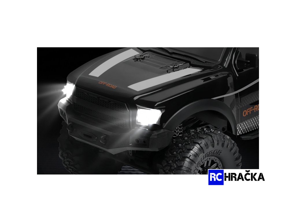 4 WD * PLNĚ PROPORCIONÁLNÍ * AŽ 15 KM/H * PŘEDNÍ I ZADNÍ LED * ODOLNOST PROTI STŘÍKAJÍCÍ VODĚ * KULIČKOVÁ LOŽISKA * OCELOVÉ ODPRUŽENÍ * 100% RTR