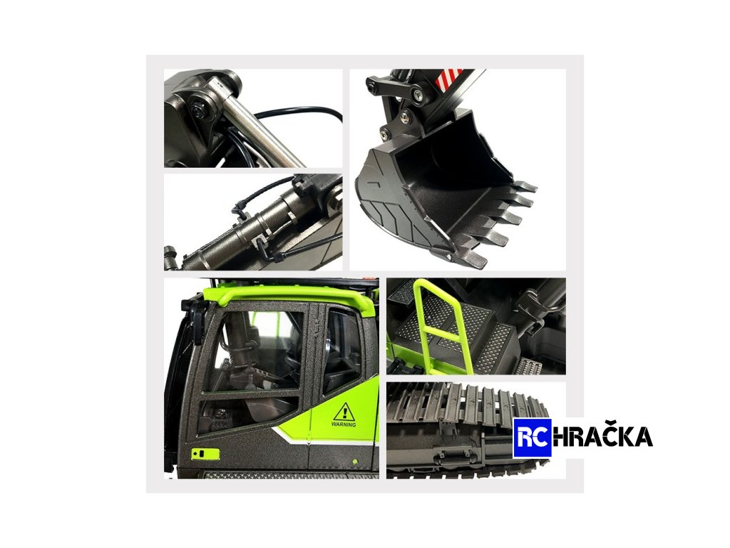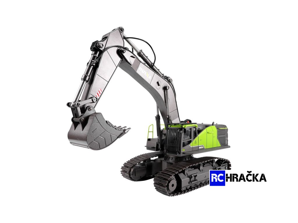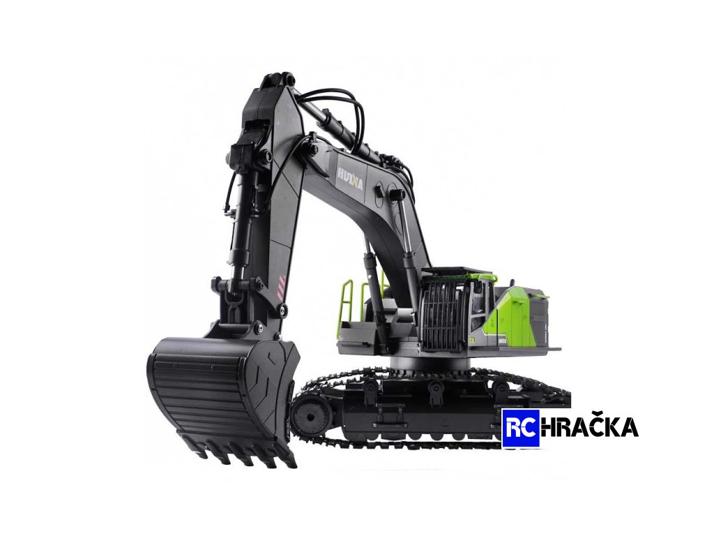 NETRADIČNÍ BAREVNÉ PROVEDENÍ BAGRU HUINA PROFI 1:14 VÁS ZAUJME NA PRVNÍ POHLED. ALE KRÁSNÁ ZELENÁ V KOMBINACI S ANTRACITOVOU BARVOU NEJSOU HLAVNÍMI LÁKADLY TÉTO MAKETY. TĚMI JSOU PROFI FUNKCE A DOPLŇKY, KTERÉ JSME ZVYKLÍ VÍDAT U MNOHEM DRAŽŠÍCH MODELŮ.
