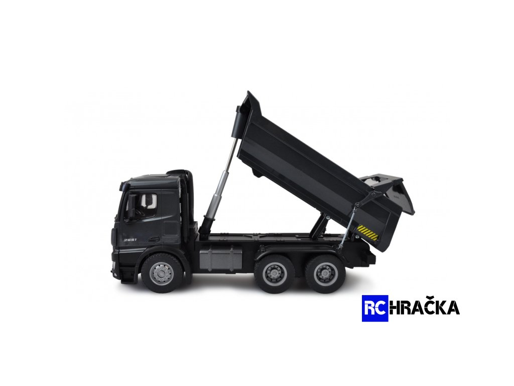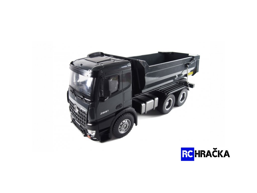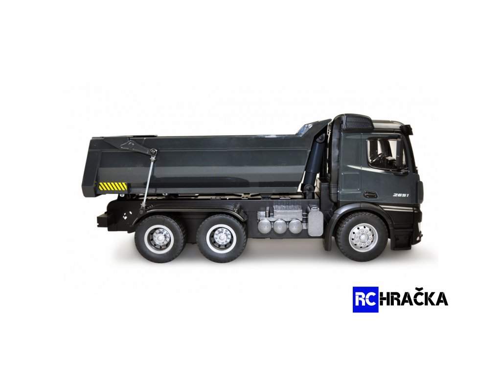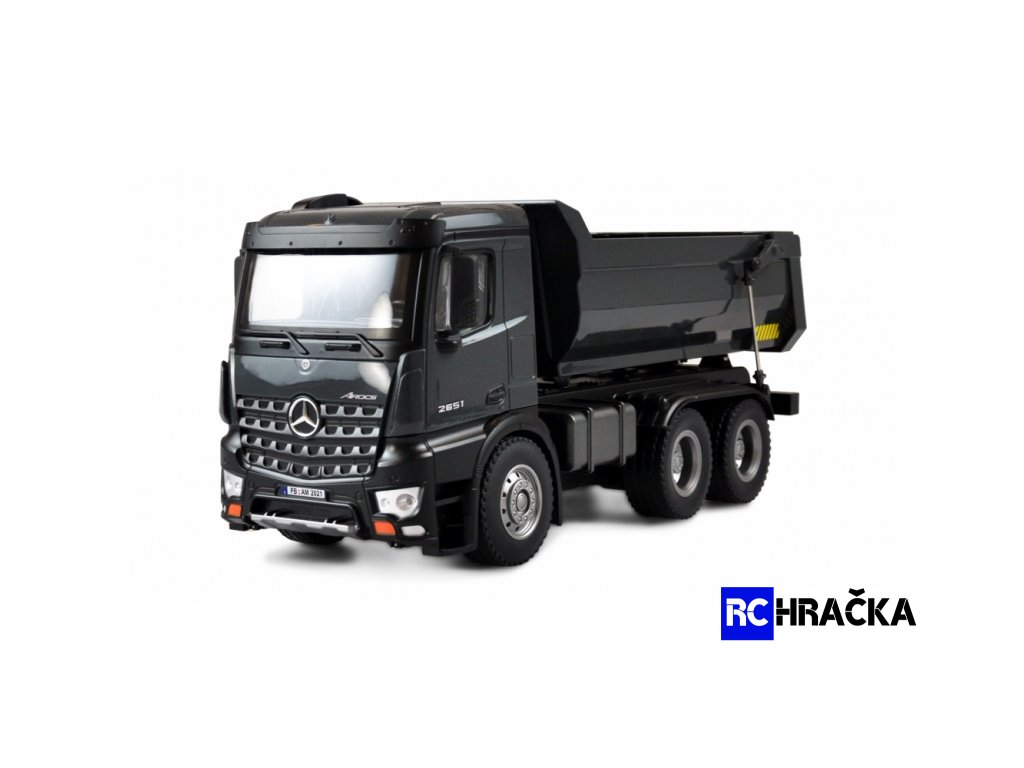 Nádherný model sklápěče Arocs je skutečně profesionální model. Arocs je název slavné serie nákladních automobilů značky Mercedes-Benz od společnosti Daimler AG. Tato vozidla pro staveniště byla poprvé představena v roce 2013 a od té doby se nacházejí na mnoha stavbách po celém světě. Model má pohon 4WD, zapouzdřenou převodovku a plně proporcionální ovládání. Je odolný proti stříkající vodě, a proto je zcela vhodný pro použití v terénu, kde si vaše děti s modelem vydrží hrát celé hodiny. A nejen Vaše děti. Konstrukce a lakování tohoto vysoce kvalitního a propracovaného modelu v celokovovém provedení, odpovídá originálu a díky tomu je jedinečný nejen svým funkcemi ale i designem. Model je vybaven efekním LED osvětlením a dále vypínatelným zvukovým modulem, který jen podtrhuje jeho autenticitu. Sklápěč je smontován a dodáván s již nainstalovanou elektronikou. Pneumatiky jsou vyrobeny z pravé gumy a poskytují enormní přilnavost na širokou škálu povrchů. Neméně zajímavá je i jeho nosnost, model totiž dokáže uvézt až 3,5 kg. Díky světelným a zvukovým efektům integrovaným v modelu nic nestojí v cestě nespoutanému potěšení z jízdy.