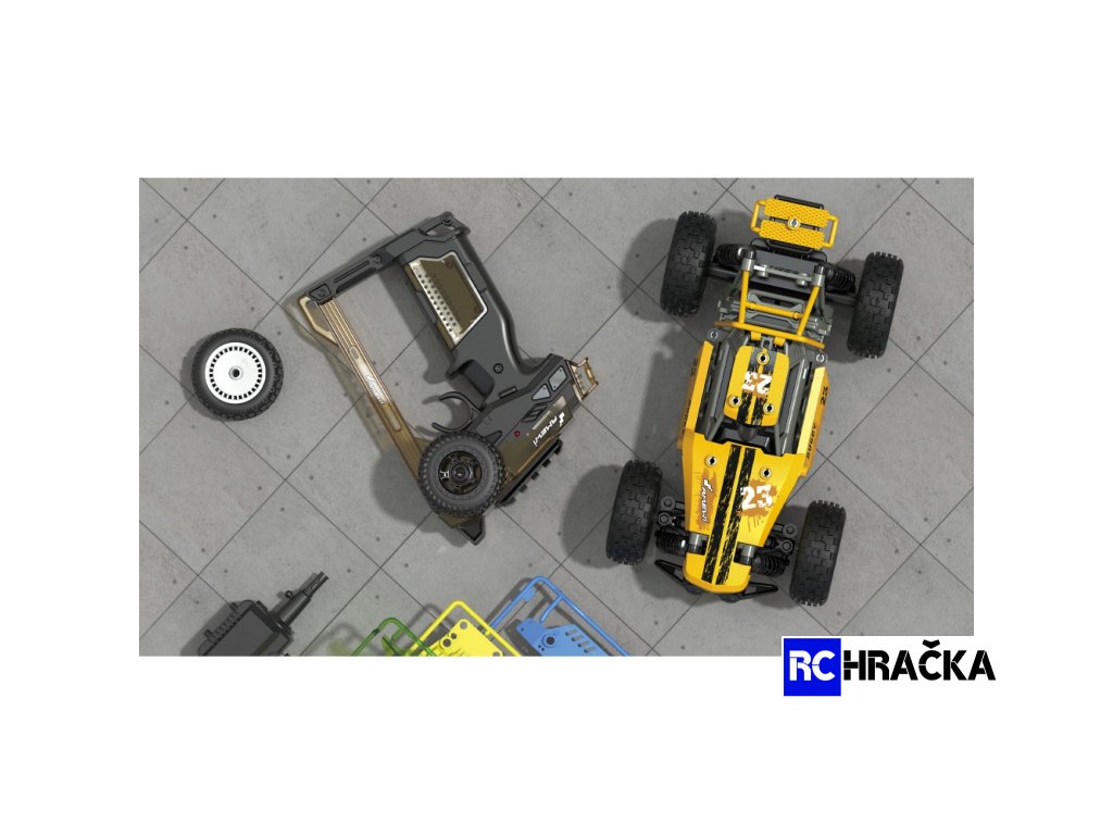 V RC STAVEBNICI COOLRC DIY naleznete skvělý závodní vůz s pohonem zadní nápravy 2WD v měřítku 1:18, který kombinuje zábavu ze stavby a poté rychlé jízdy. Díky inteligentnímu zásuvnému systému lze model s více než 60 kusy smontovat zcela bez použití nářadí do 30 minut a dokonce bez lepidla. Celé tělo je vyrobeno z pevného ABS plastu. Samolepky odolné vůči UV záření s trendy COOL vzory dodávají závodníkovi v případě potřeby osobitější vzhled. S pneumatikami vyrobenými z gumové směsi s vysokou přilnavostí, tlumiči nárazů a ochranou proti stříkající vodě je model vhodný i pro venkovní použití. Model dosahuje maximální rychlosti cca 8 km/h. Moderní 2,4GHz pistolové dálkové ovládání je již součástí dodávky. Pro uvedení modelu do provozu jsou vyžadovány pouze standardní domácí baterie pro model a dálkové ovládání.