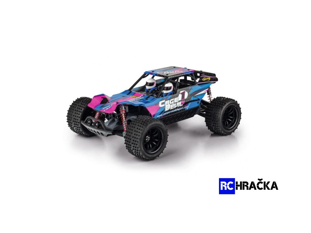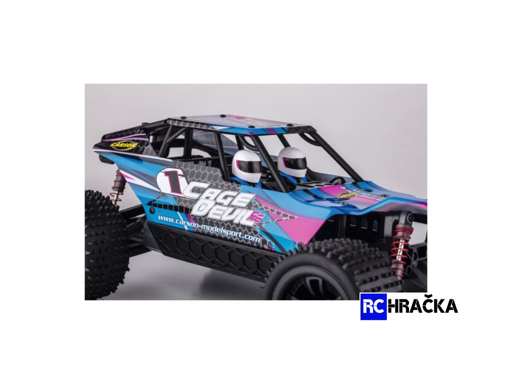 Cage Devil je rychlý teréňák z řady Fast-Entry společnosti CARSON Modelsport, který může dosáhnout rychlosti 35 km / h. Dálkové ovládání 2,4 GHz. Nově navržený podvozek je pro jakýkoliv drsný terén. Elektronická jednotka chráněná proti stříkající vodě umožňuje jízdu i na mokré zemi. Zajímavým prvkem je propracovaný design karoserie s čísly řidičů a předními a zadními LED diodami. Vysoce přilnavé, terénní pneumatiky.Pohon zadních kol. Vysoce výkonný akumulátor Liion. Baterii lze upevnit do modelu zespodu, takže není nutné odstraňovat plášť karoserie. Balení 100% RTR včetně všech potřebných baterií.