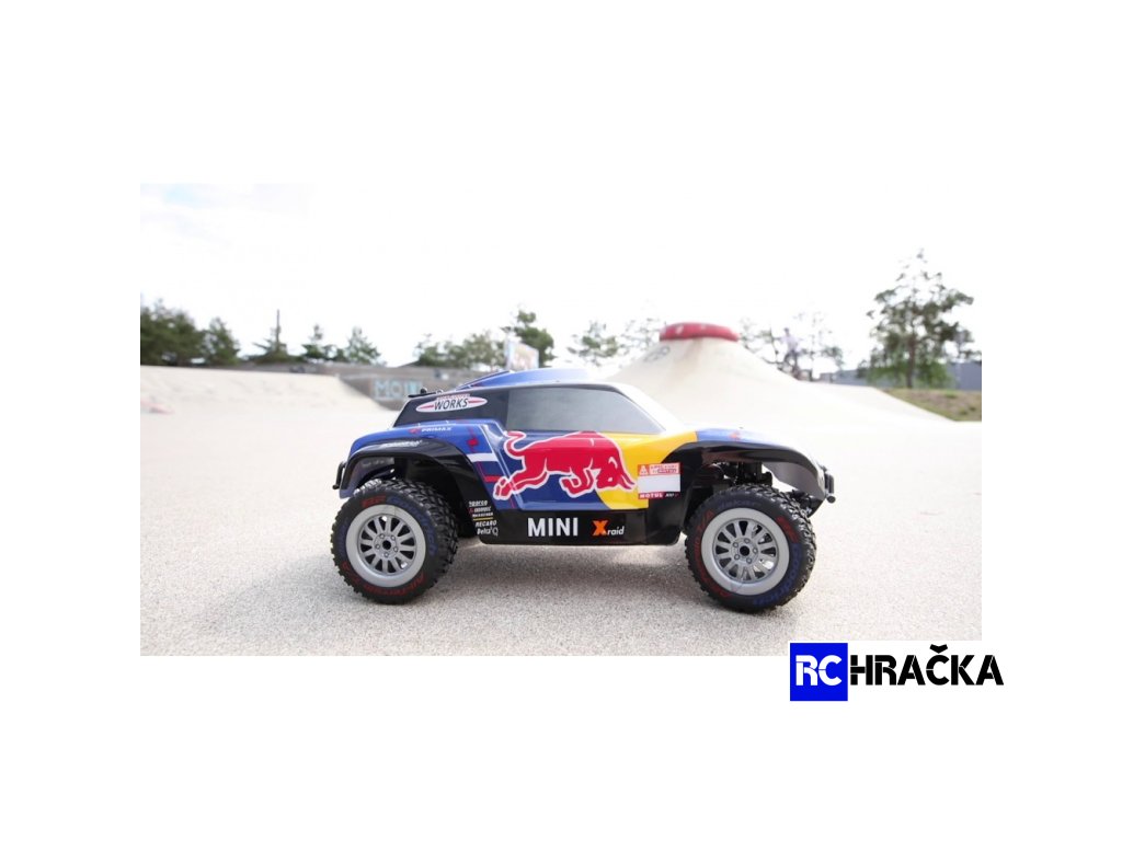 Ideální volba pro Vaše nejmenší závodníky má jméno X-raid MINI JCW Buggy Red Bull. Hlavní předností tohoto modelu je licence nejen od MINI BMW AG, ale také od Red Bullu. Díky tomu má auto přesně stejný design jako jeho slavný vzor, který závodí na proslulém Rallye Dakar. Model má pohon přední nápravy, tedy 2WD a dokáže vyvinout rychlost až 10 km/h. Díky odpružení všech kol se nemusíte bát ani terénu ve kterém se X-raid MINI JCW cítí jako ryba ve vodě. Velmi kvalitní zpracování podtrhuje karoserie z téměř nezničitelného Lexanu s detailní malbou. Ovladač pracuje na dnes již standartních 2.4 GHz, kdy je možné, aby jezdilo až 10 jezdců naráz bez vzájemného rušení. Udělejte svým ratolestem radost a zažijte s nimi nefalšovanou atmosféru Rallye Dakar.