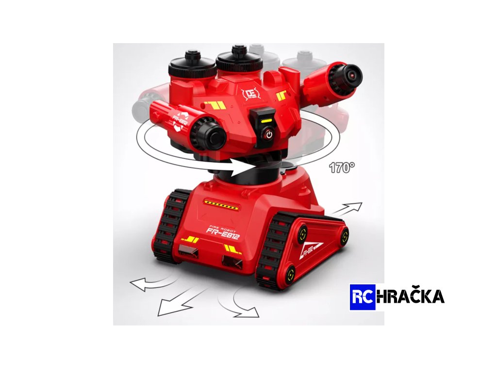 Tento malý hasičský robot zvládne jakoukoliv záchrannou misi. Jednou rukou dokáže uhasit požár pomocí vodního rozprašovače a v druhé ruce má LED červené světlo, které můžete využít jako laser. Tento RC model robota podporuje v dětech hru a bujnost fantazie.