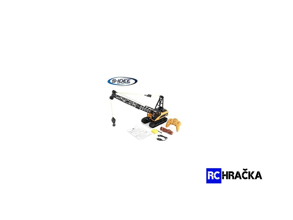 Skvělý pásový jeřáb v měřítku 1:14. Vysoce kvalitní jeřáb s pevným kovovým hákem. Plně vybavený mnoha funkcemi. Praktické dálkové ovládání 2,4 GHz, gumové pásy, realistické zvuky, akumulátor NiMH 7,2V. Tento jeřáb je skutečným pomocníkem a pracantem na každé stavbě!