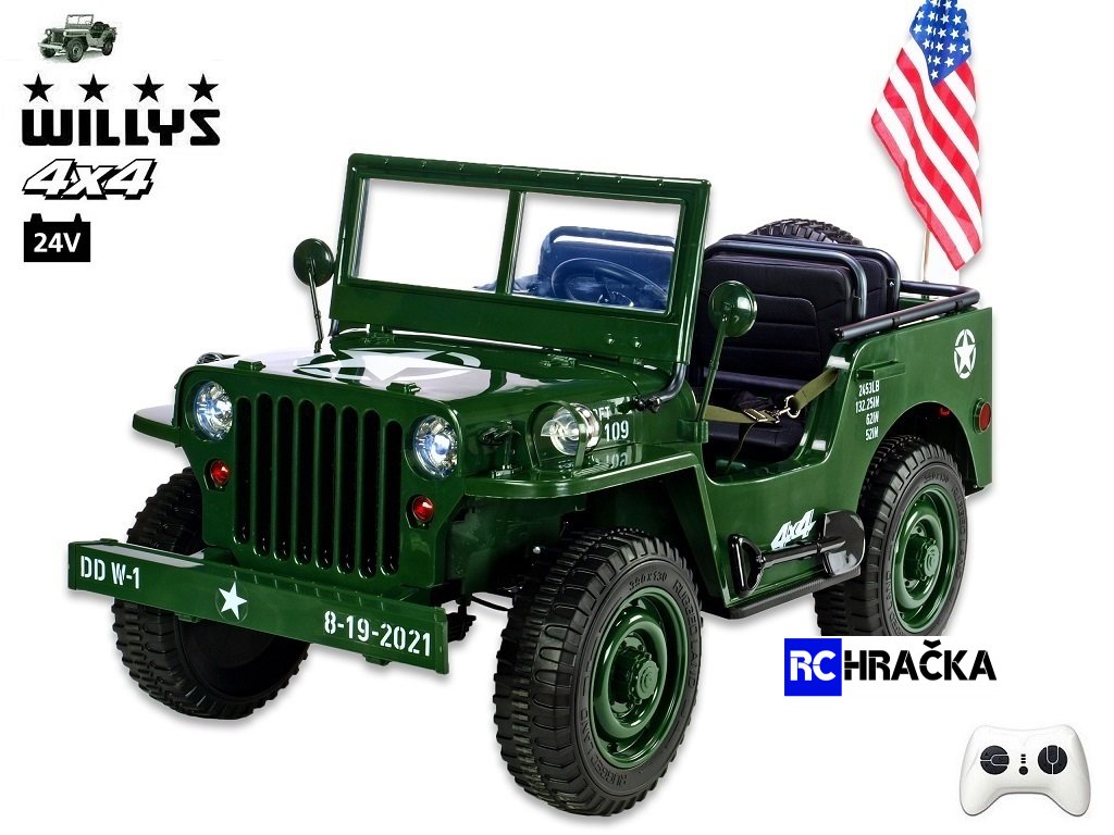 Jeep Willys s 2,4G, 4x 120W / 24V, 3 místný, green army