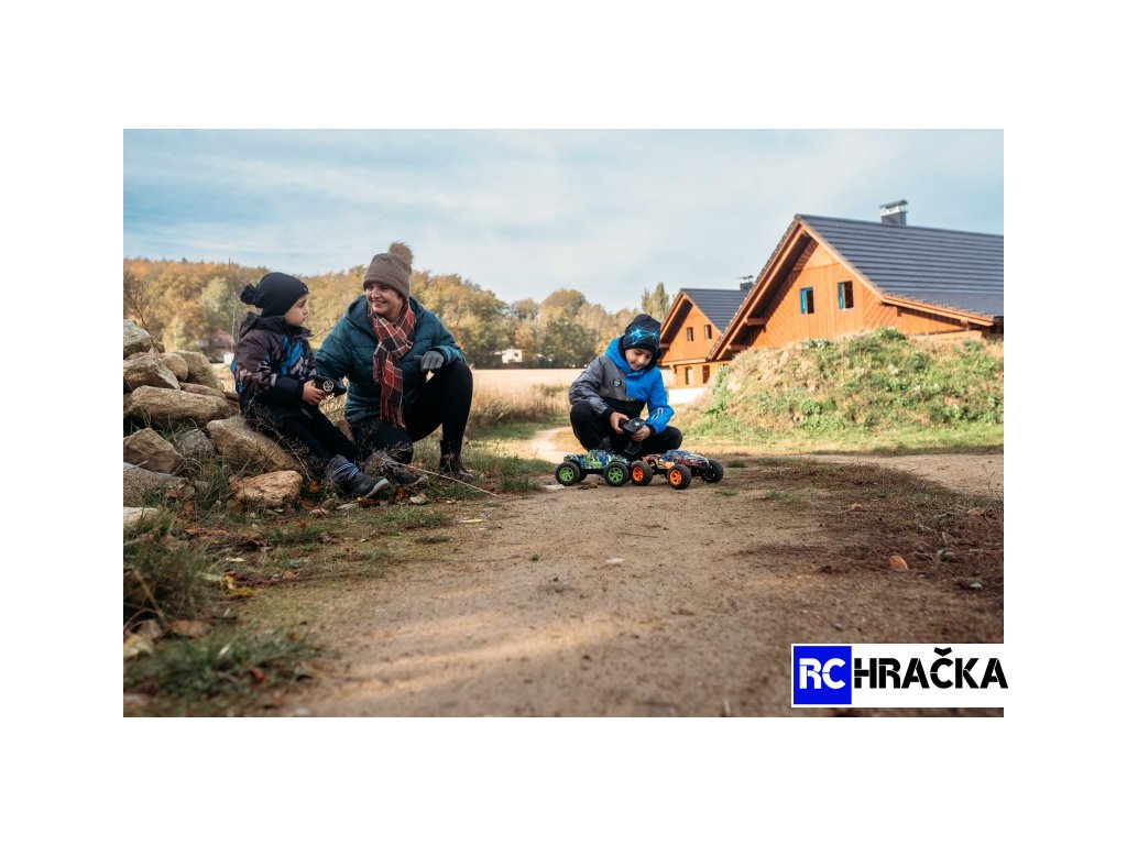 Dominator je dalším RC modelem od značky RMT. Snažíme se vybrat ty nejlepší funkce a parametry a sestavit pro vás ten nejideálnější RC model pro každou kategorii, a díky tomu vznikla naše privátní značka RMT. Povedlo se nám sestavit legendární auto na dálkové ovládání pro děti a tím je LAND ROVER. Nyní nastal čas na něco rychlejšího. Rychlé auto na dálkové ovládání do každého terénuStěžejními parametry byla rychlost, obratnost a odolnost. Nebyli bychom to ale my, abychom nepřidali dobu jízdy. Dominator je sestrojen tak, aby dokázal jet rychlostí až 36 km/h, díky pohonu zadní nápravy je neskutečně obratný a s velkými ultra měkkými koly a kvalitním zpracováním odolá i velkým výzvám. Čtyři nezávisle uložené bezolejové tlumiče s kovovými prvky si poradí v jakémkoliv terénu, nezastaví ho štěrk, hlína, kořeny ani mokrá tráva. Ochrana proti vodě z něj dělá voděodolného závodníka. Masivní kola v kombinaci s vyšším podvozkem zaručují skvělou průjezdnost terénem a trakci. RC Monster truck s plně proporcionálním ovládánímVýkonný stejnosměrný motor zajišťuje maximální rychlost 36 km/h, velikou výhodou tohoto modelu je omezovač rychlosti. Stačí jen kolečkem na dálkovém ovládání stáhnout maximální rychlost a přizpůsobit tak auto i pro mladší závodníky. Kvalitní komponenty, jako jsou kovové unašeče kol a poloosy, vyladěné kloubové uložení těhlic v ramenou a kvalitní diferenciály zaručují vysokou odolnost RC auta. Samozřejmostí je plně proporcionální ovládání, kdy můžete plynule zrychlovat, zpomalovat, ale i zatáčet. Design podtrhují přední LED světla. RC auto s dlouhou dobou jízdySoučástí modelu je nabíjecí akumulátor Li-ion 1500 a 2500 mAh 7,4 V, se kterými dokáže auto jezdit až 122 minut. Přiložená USB nabíječka při nabíjení bliká a při ukončení nabíjení svítí, tak poznáte, že je připravena k další jízdě. Dálkové ovládání je pistolové, velmi intuitivní s dosahem cca 100 m. Potřebujete do něj 3 x AA baterie.