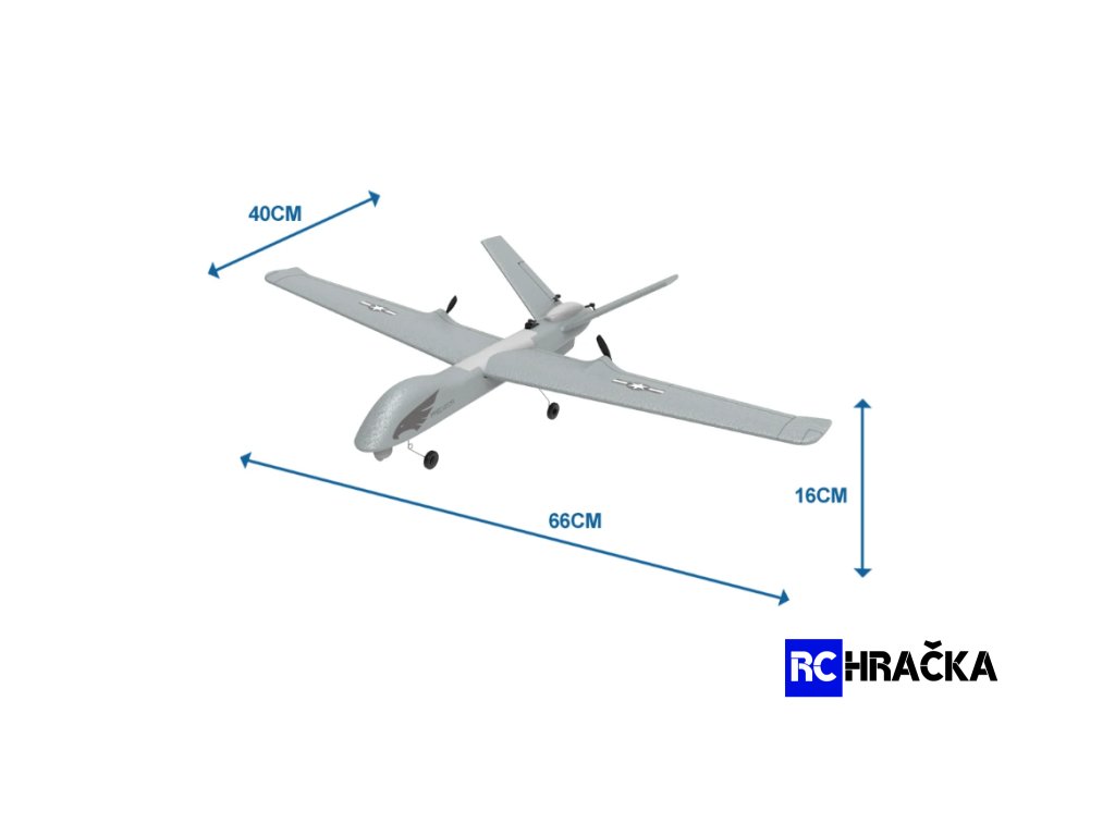 Letadlo na dálkové ovládání Predator Z55Predator Z55 je ultralehké letadlo na dálkové ovládání vyrobené z EPP pěny. Tento materiál vyniká flexibilitou, lehkostí a odolností. Bez problému ustojí i menší letecký nezdar. Navržené je podle bezpilotního letounu General Atomics MQ-9 Repear. Jedinečný aerodynamický design zajišťuje skvělý letový výkon a stabilitu.Silné motory, výškovka a vestavěný gyroskopS výkonnými mikromotory se proletíte i za mírného vánku. Startovat lze z ruky nebo země. Díky výškovce je možné letět stále stejnou rychlostí, pomaleji či rychleji, aniž byste museli neustále přidávat nebo ubírat plyn. Vestavěný gyroskop zajišťuje stabilní a vyrovnaný let. Ovládání není složité. Bez problémů si s ním poradí začátečníci nebo děti. Let s letadlem Predator Z55 je příjemný zážitek i pro pokročilé piloty.20 minut letuDoba letu se odvíjí od stylu létání a povětrnostních podmínek. Obecně se pohybuje se kolem 20 minut. Součástí je akumulátor 3,7 V 600 mAh, který snadno nabijete přiloženou USB nabíječkou. Dosah dálkového ovladače na 3 AA baterie je cca 200 m. Funguje na frekvenci 2,4 GHz. Rozpětí letadla je 66 cm. Obsah balení: RC letadlo Z55 Dálkové ovládání Akumulátor USB nabíječka Šroubováček Náhradní vrtule Podvozek letadla Technické parametry: Rozpětí: 66 Délka letadla: 40 Barva: šedá Frekvence ovladače: 2,4Ghz Dosah ovladače: 200 Napětí akumulátoru: 3.7 Kapacita akumulátoru: 600 Typ akumulátoru: Li-Po Doba nabíjení: 60 Doba letu: 20 Baterie ovladače: 3xAADiskuze