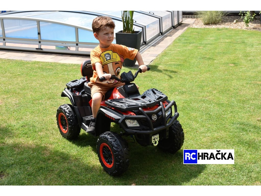 Naše nejvýkonnější dětská elektrická čtyřkolka T-Speed s pohonem 4x4 v červené barvě má perfektní design terénního stroje, kvalitní materiály a zpracování. Podvozek vozítka tvoří velmi tichá a pohodlná EVA kola s ložisky na přední nápravě a odpružením zadní nápravy. Čtyřkolka je poháněna čtyřmi výkonnými elektrickými motory o výkonu 120W / 24V a disponuje dvěma rychlostmi vpřed a vzad. Při nesešlápnutém pedálu tah motoru nahrazuje brzdu. Pro pohodlí dítěte má čtyřkolka čalouněnou sedačku. Potěší i vysoká nosnost 60 kg.