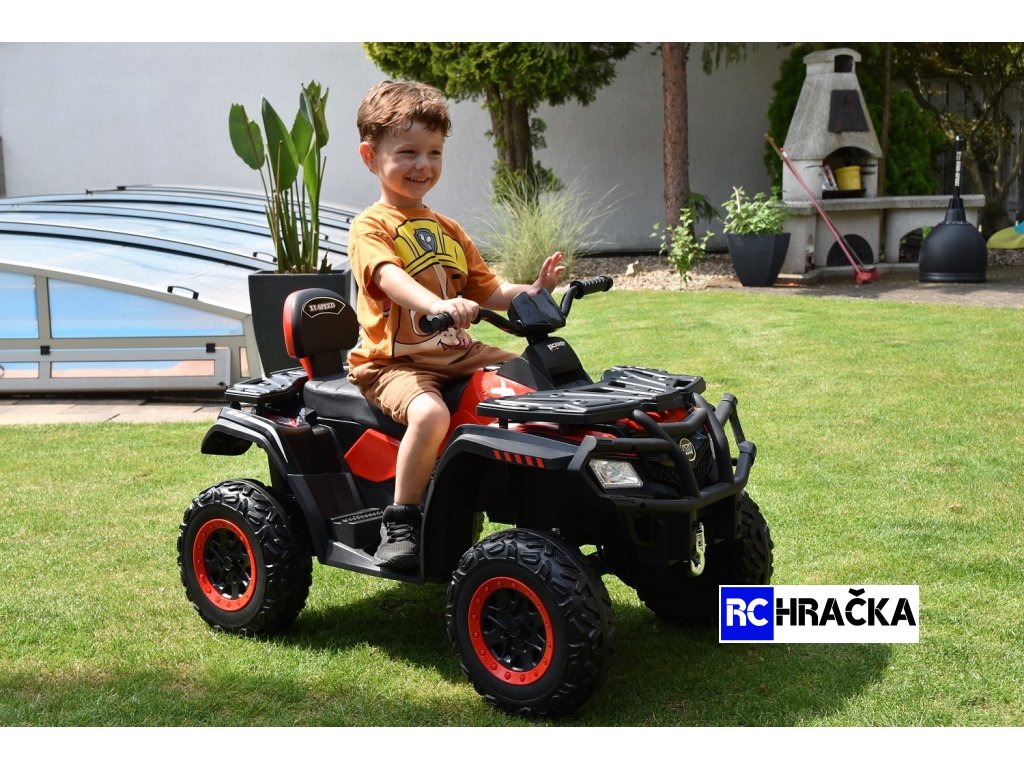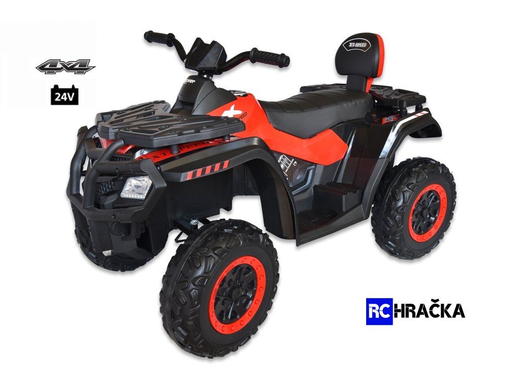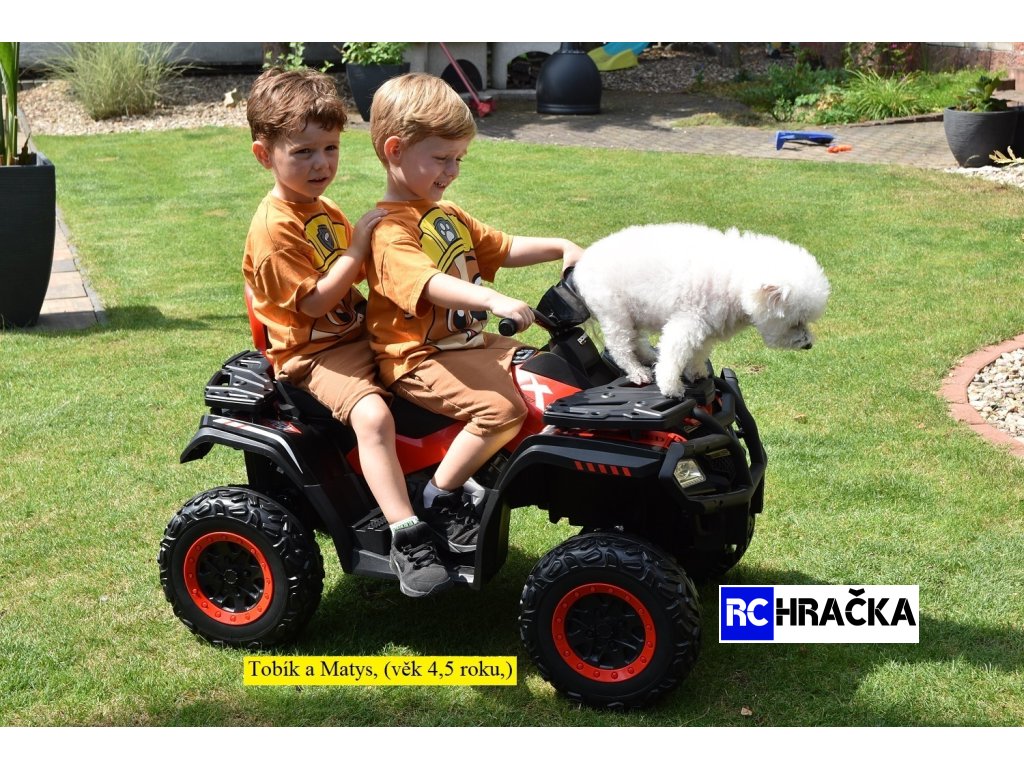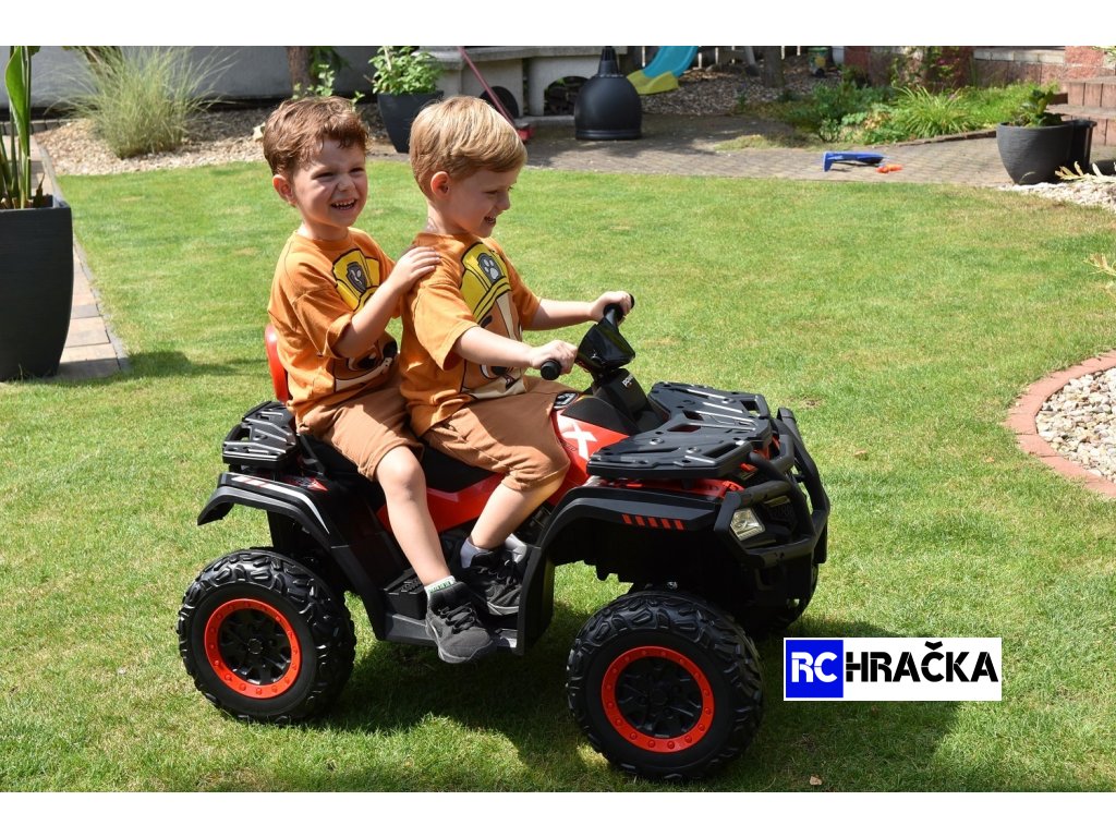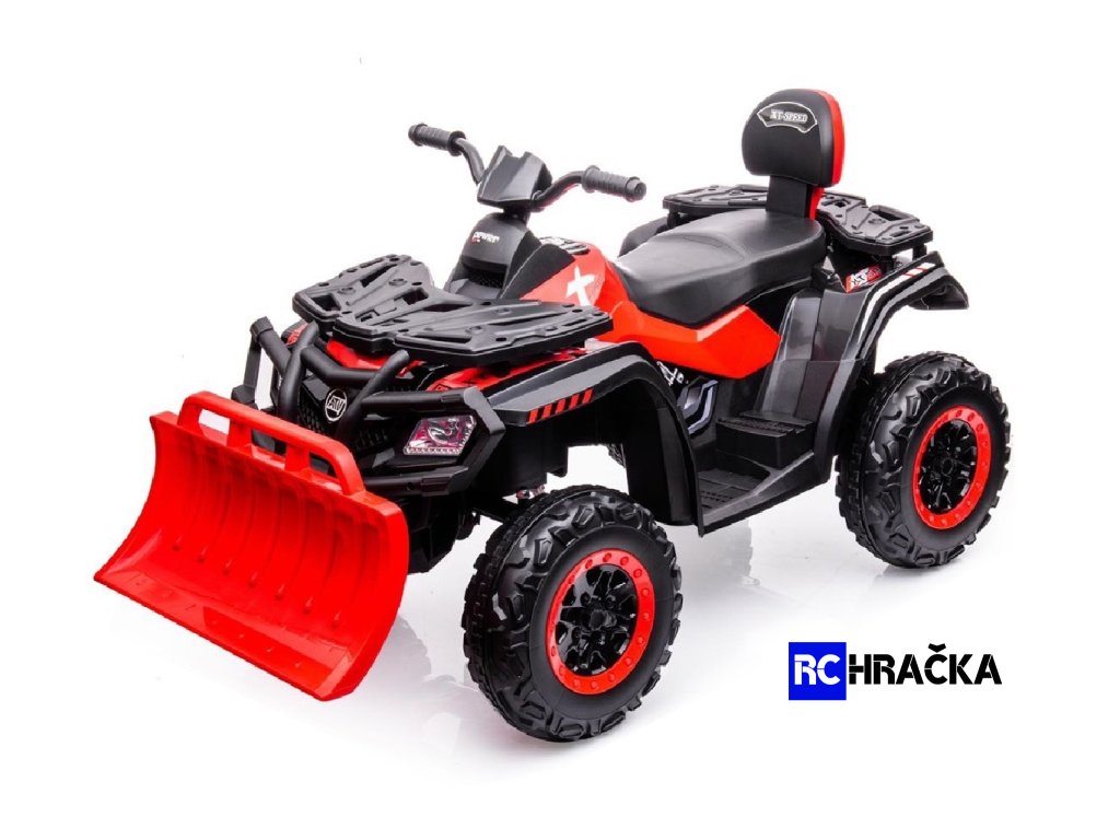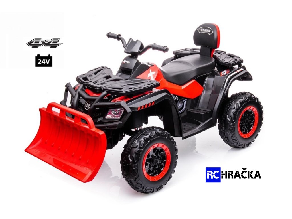 Silná dvoumístná čtyřkolka T-Speed 24V s pluhem, 4x120W = 480W, červená