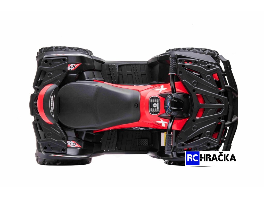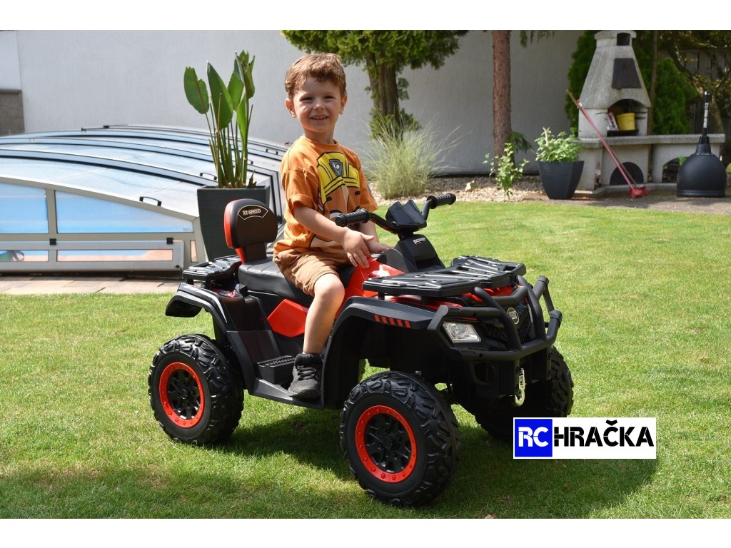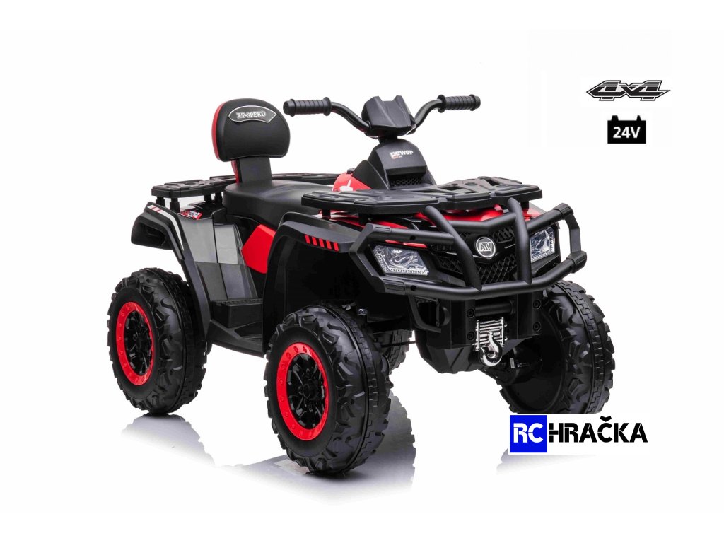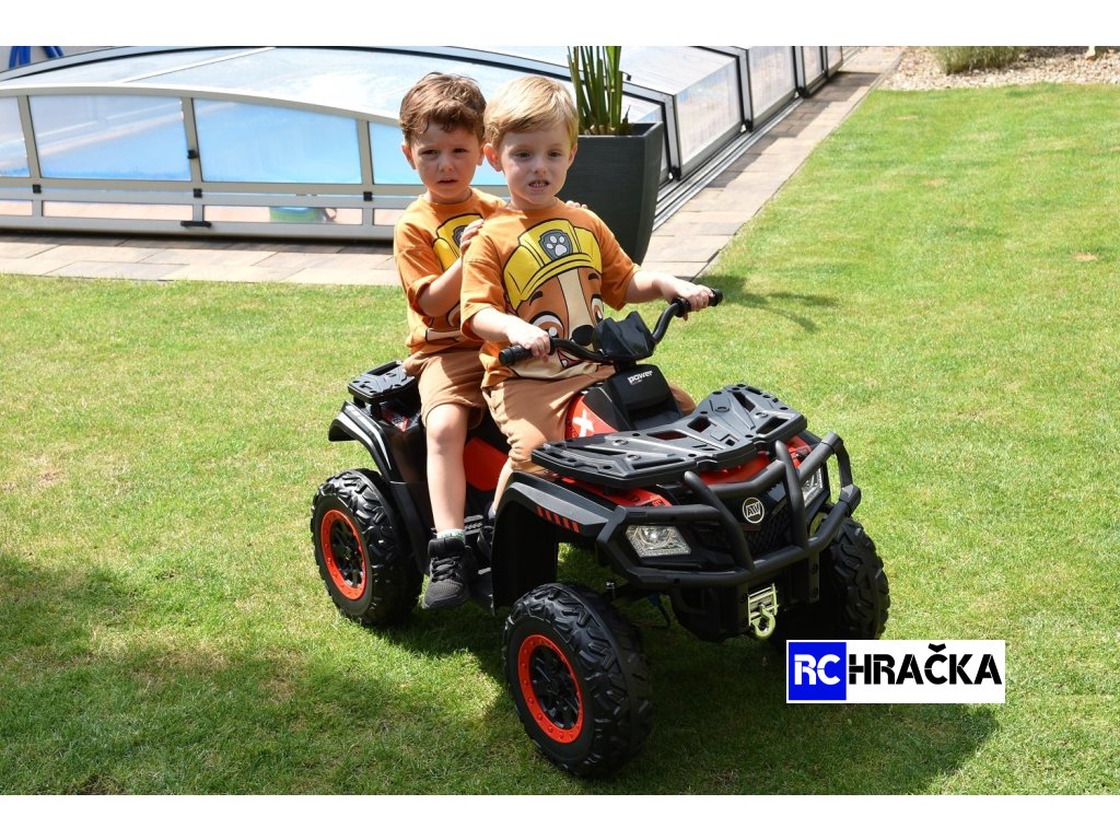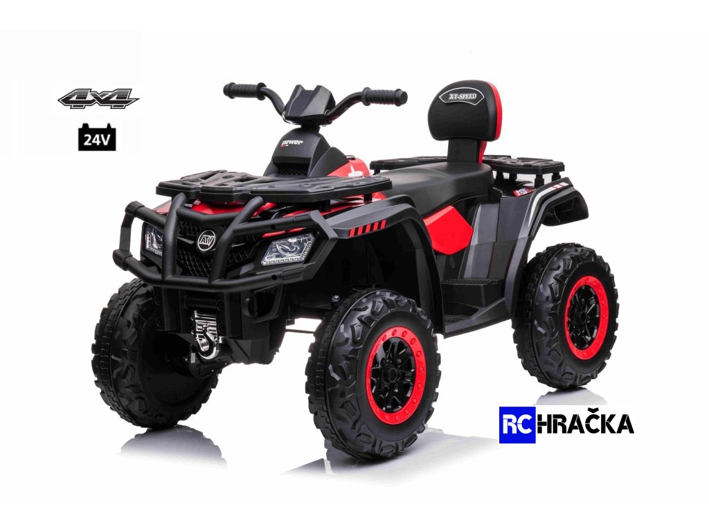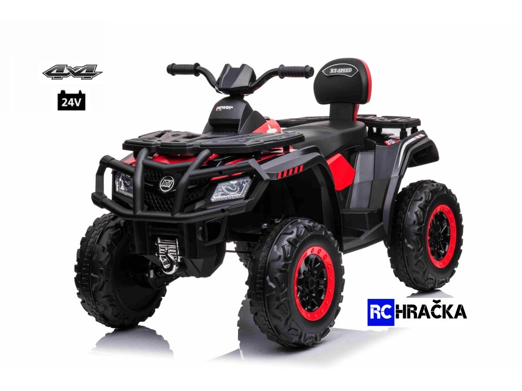 Silná dvoumístná čtyřkolka T-Speed 24V s pluhem, 4x120W = 480W, červená