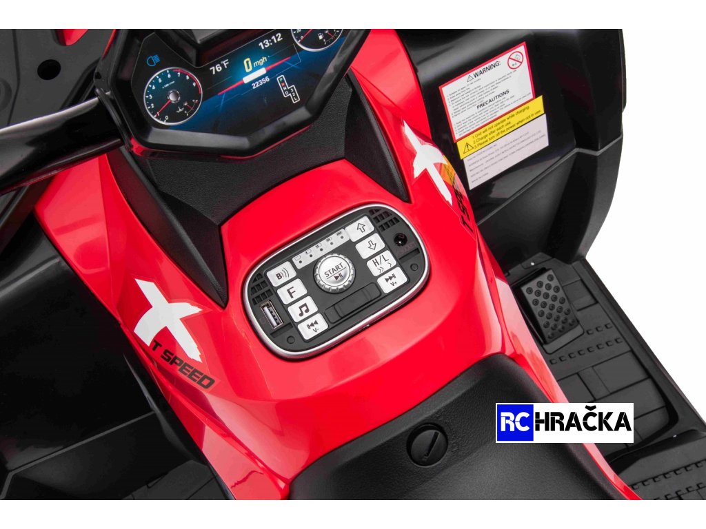 Centrální ovládací panel – audioplayer, Bluetooth, FM rádio, USB port, voltmetr, zvuky startu motorů a přehrávání hudby.