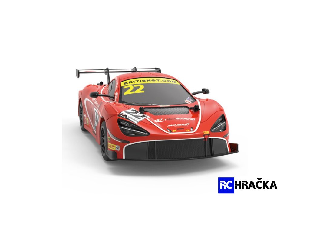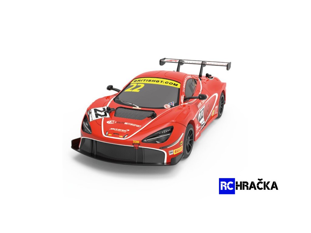 LUXUSNÍ LICENCOVANÝ MODEL VOZU MC LAREN 720S GT3 JE SKVĚLOU VOLBOU PRO MILOVNÍKY SUPERSPORTŮ, KTEŘÍ SI RÁDI ZAZÁVODÍ, ALE POŽADUJÍ TAKÉ DOKONALÝ MAKETOVÝ VZHLED.